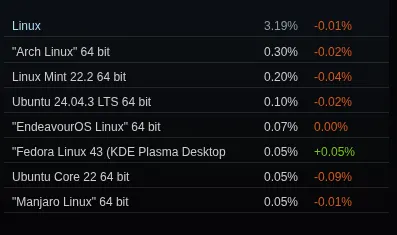 arrow-up1111arrow-down1external-linkSteam On Linux Ends 2025 With 3.19% Marketshare, AMD Linux CPU Use Approaches 72%plus-squarewww.phoronix.comcm0002@lemdro.idEnglish · 3 days agomessage-square4fedilink