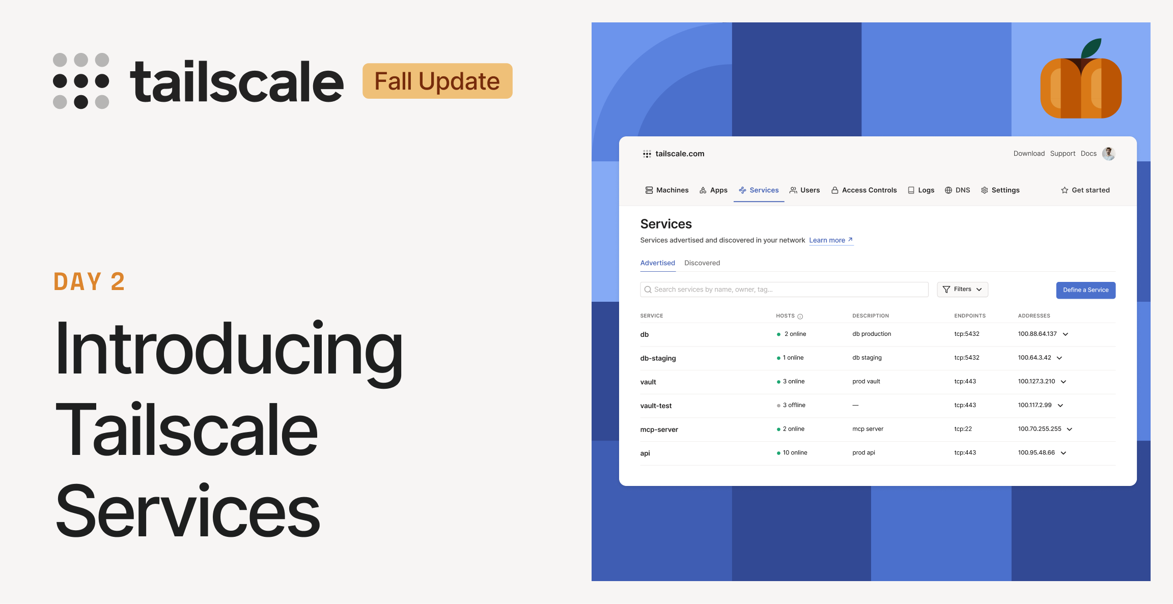 arrow-up11arrow-down1external-linkTailscale Services: Define resources on your tailnet, with granular controlsplus-squaretailscale.comRSS BotMBEnglish · 10 hours agomessage-square0fedilink