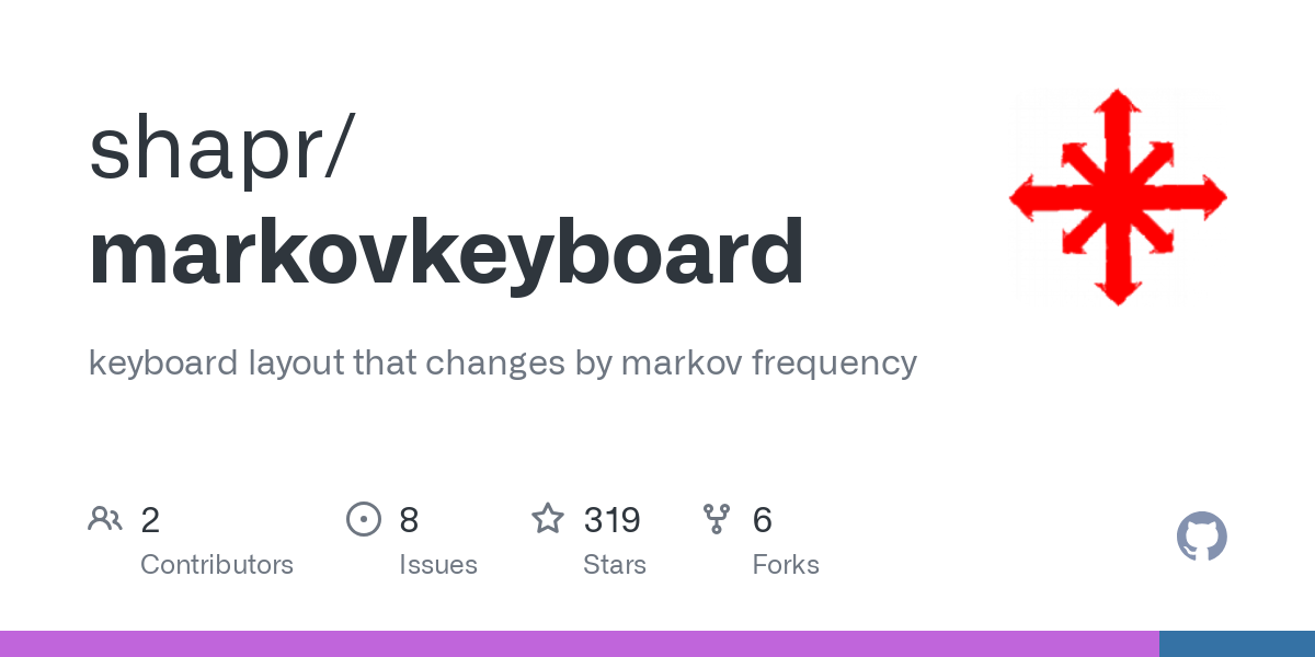 arrow-up12arrow-down1external-linkMarkov Keyboard: keyboard layout that changes by Markov frequencygithub.comRSS BotMB to Hacker NewsEnglish · 1 year agomessage-square0fedilinkfile-text
