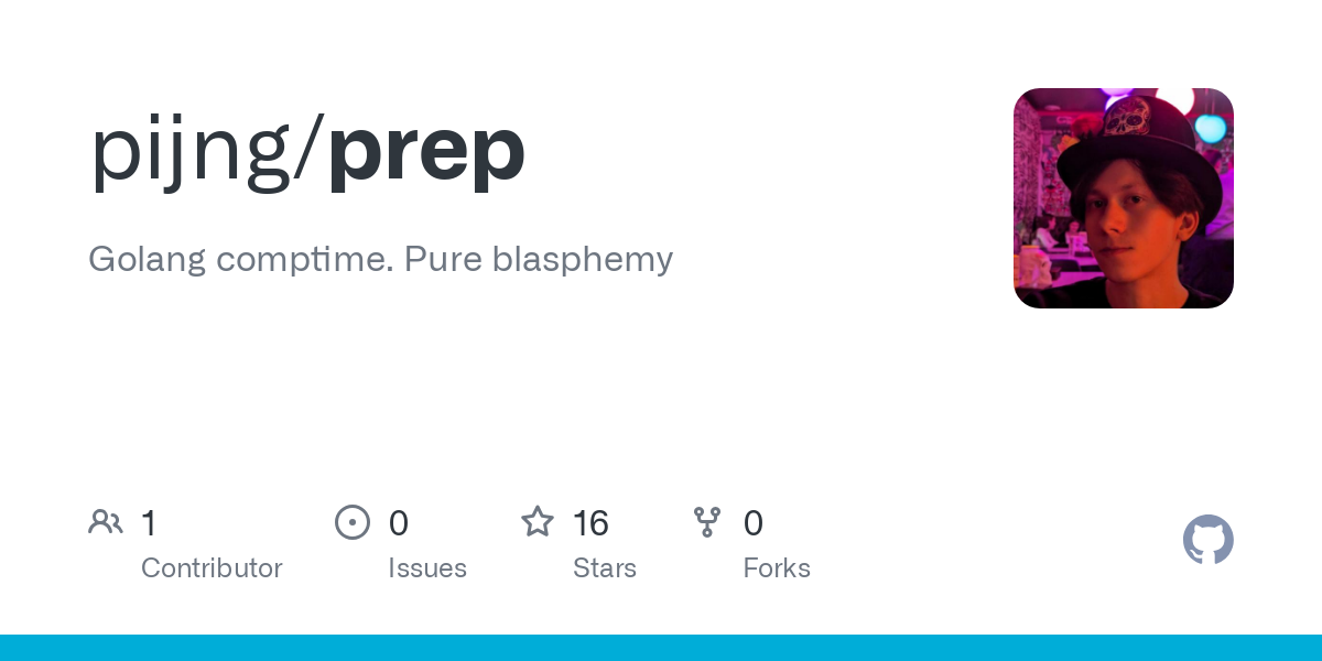 arrow-up12arrow-down1external-linkPrep: Golang Comptimegithub.comRSS BotMB to Hacker NewsEnglish · 1 year agomessage-square0fedilinkfile-text