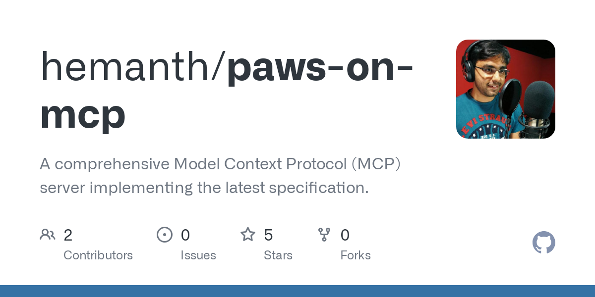 GitHub - hemanth/paws-on-mcp: A comprehensive Model Context Protocol (MCP) server implementing the latest specification.
