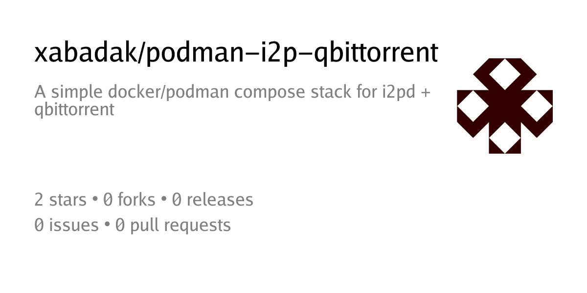 Thought I would share my simple docker/podman setup for torrenting over I2P. It’s just 2 files, a compose file and a config file, along with an in-depth explanation, available at my repo https://codeberg.org/xabadak/podman-i2p-qbittorrent. And it comes with a built-in “kill-switch” to prevent traffic leaking out to the clearnet. But for the uninitiated, some may be wondering: