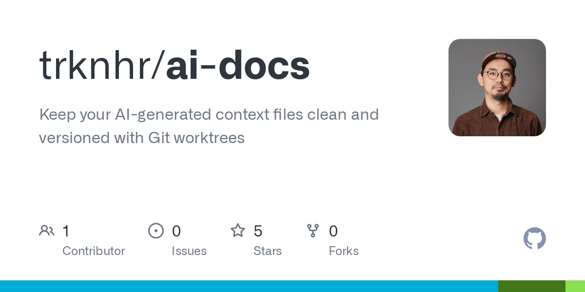 GitHub - trknhr/ai-docs: Keep your AI-generated context files clean and versioned with Git worktrees