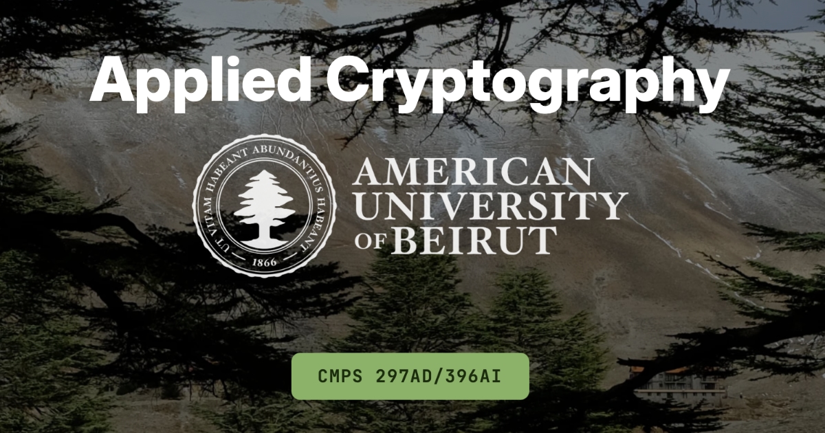 RSS BotMB to Lobste.rsEnglish · 4 months agoApplied Cryptography: comprehensive, novel course materials released under Creative Commonsappliedcryptography.pageexternal-linkmessage-square0fedilinkarrow-up12arrow-down10file-text