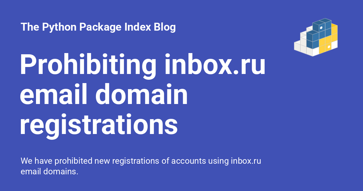 arrow-up14arrow-down1external-linkPyPI Prohibits inbox.ru email domain registrationsblog.pypi.orgRSS BotMB to Hacker NewsEnglish · 4 months agomessage-square0fedilinkfile-text