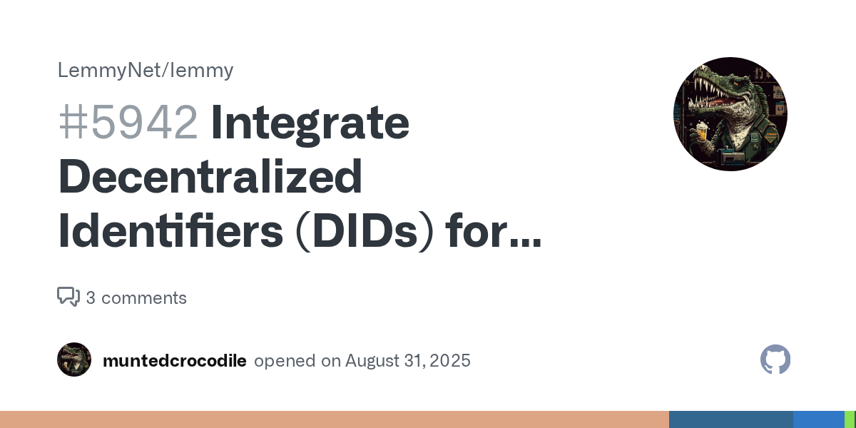 I’ve opened a discussion on the Lemmy dev GitHub about integrating Decentralized Identifiers (DIDs). Think of a DID as a permanent, global ID you own, independent of any server.