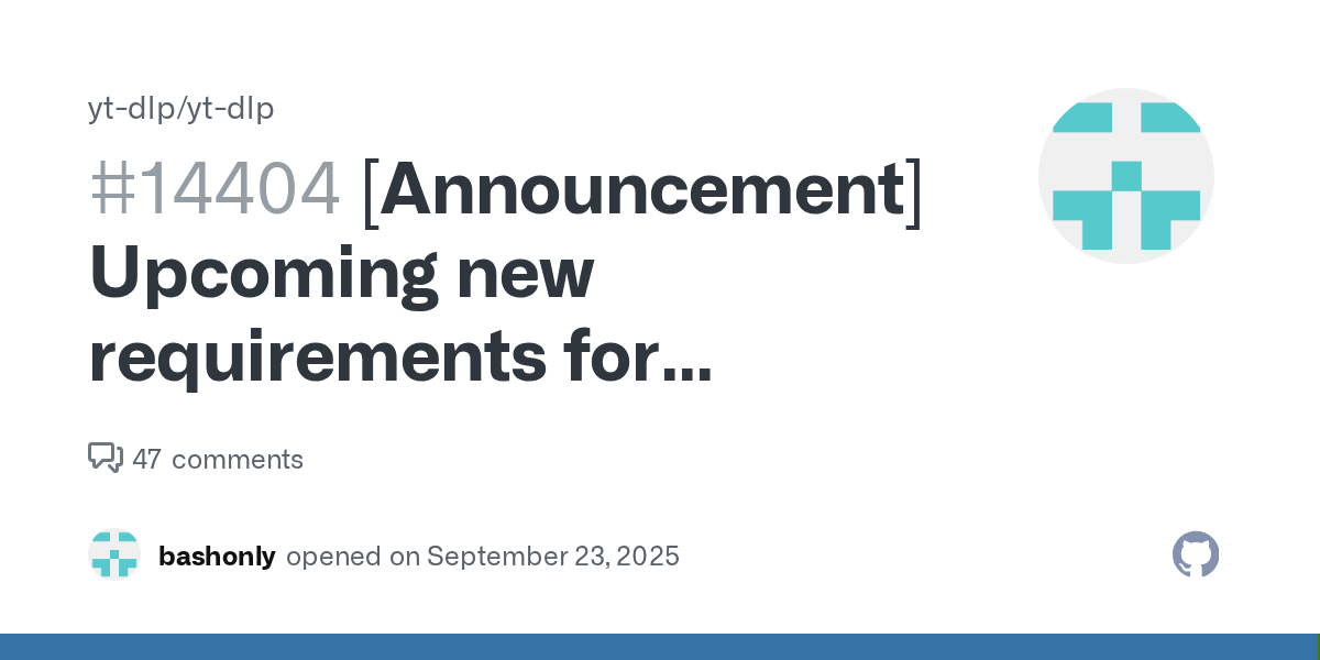 UPDATE: Installing Deno and installing yt-dlp through PyPi fixes yt-dlp but the very idea that Google is mandating JS to lock down YT in an attempt at pseudo-DRM is still crappy.