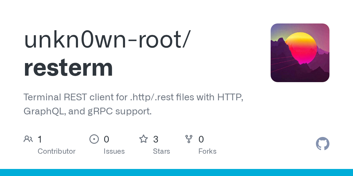 arrow-up11arrow-down1external-linkShow HN: Resterm – A terminal-based REST/GraphQL and gRPC clientgithub.comRSS BotMB to Hacker NewsEnglish · 2 hours agomessage-square0fedilinkfile-text