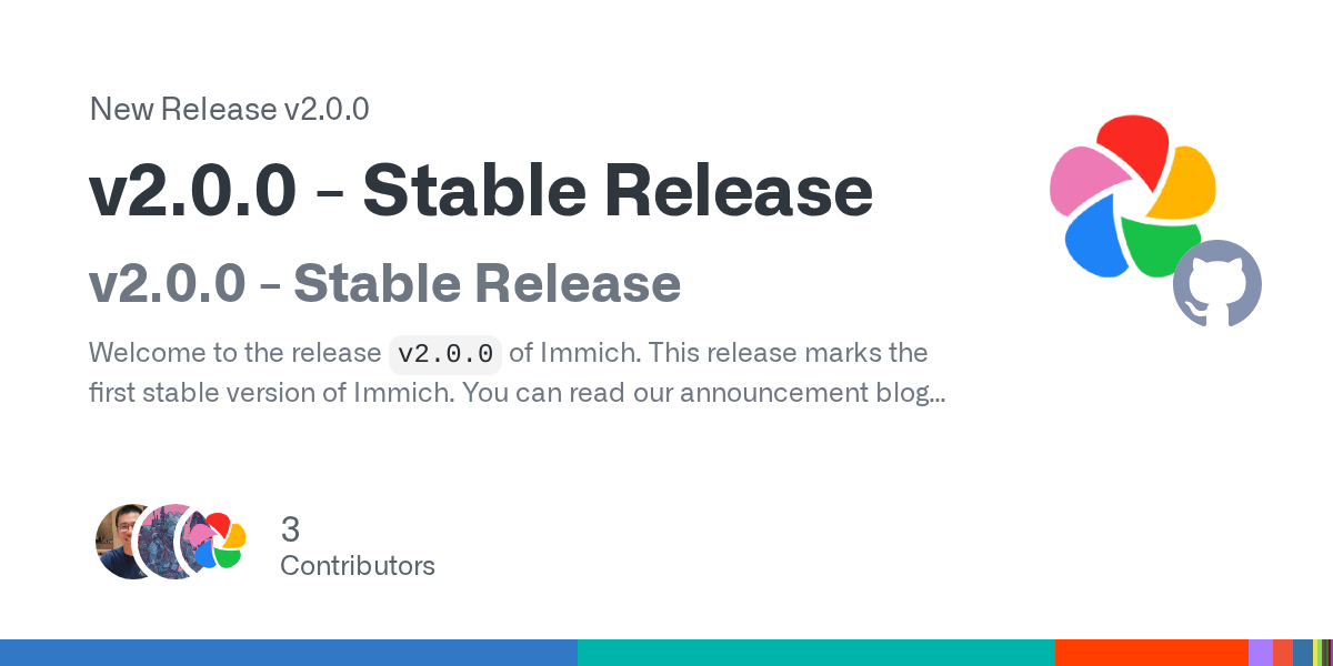 arrow-up15arrow-down1external-linkImmich v2.0.0 - Stable Releasegithub.comRSS BotMB to Lobste.rsEnglish · 2 hours agomessage-square0fedilinkfile-text