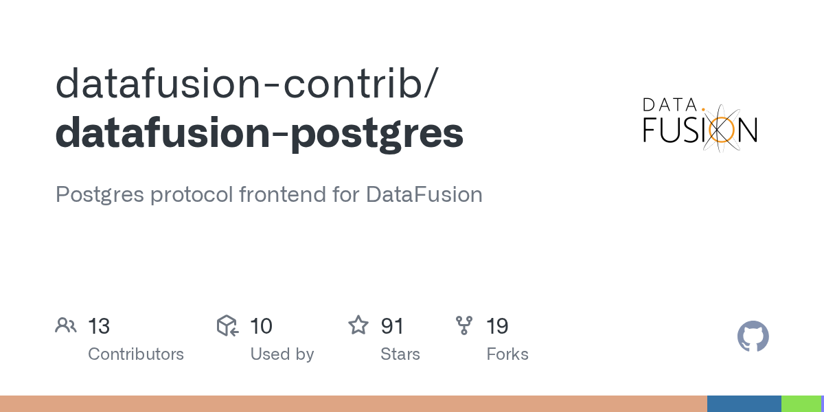 arrow-up11arrow-down1external-linkdatafusion-postgres: postgres protocol adapter for datafusion query enginegithub.comRSS BotMB to Lobste.rsEnglish · 7 hours agomessage-square0fedilinkfile-text