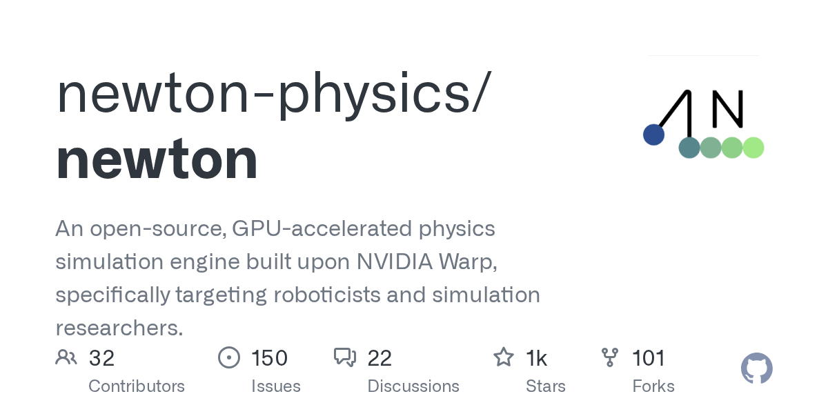 arrow-up14arrow-down1external-linkNewton: physics simulation engine built upon NVIDIA Warpgithub.comRSS BotMB to Hacker NewsEnglish · 2 hours agomessage-square0fedilinkfile-text