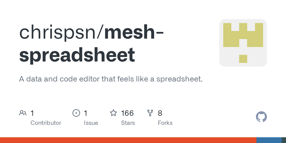 RSS BotMB to Lobste.rsEnglish · 3 hours agomesh-spreadsheet: data & code editorgithub.comexternal-linkmessage-square0fedilinkarrow-up12arrow-down10file-text