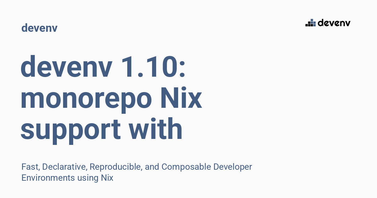 arrow-up12arrow-down1external-linkdevenv 1.10: monorepo Nix support with devenv.yaml imports - devenvdevenv.shRSS BotMB to Lobste.rsEnglish · 2 hours agomessage-square0fedilinkfile-text