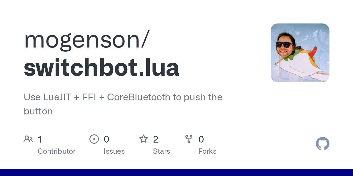 arrow-up12arrow-down1external-linkPush the Button: Using LuaJIT + FFI + CoreBluetooth with an async design to automate a trivial taskgithub.comRSS BotMB to Lobste.rsEnglish · 2 hours agomessage-square0fedilinkfile-text