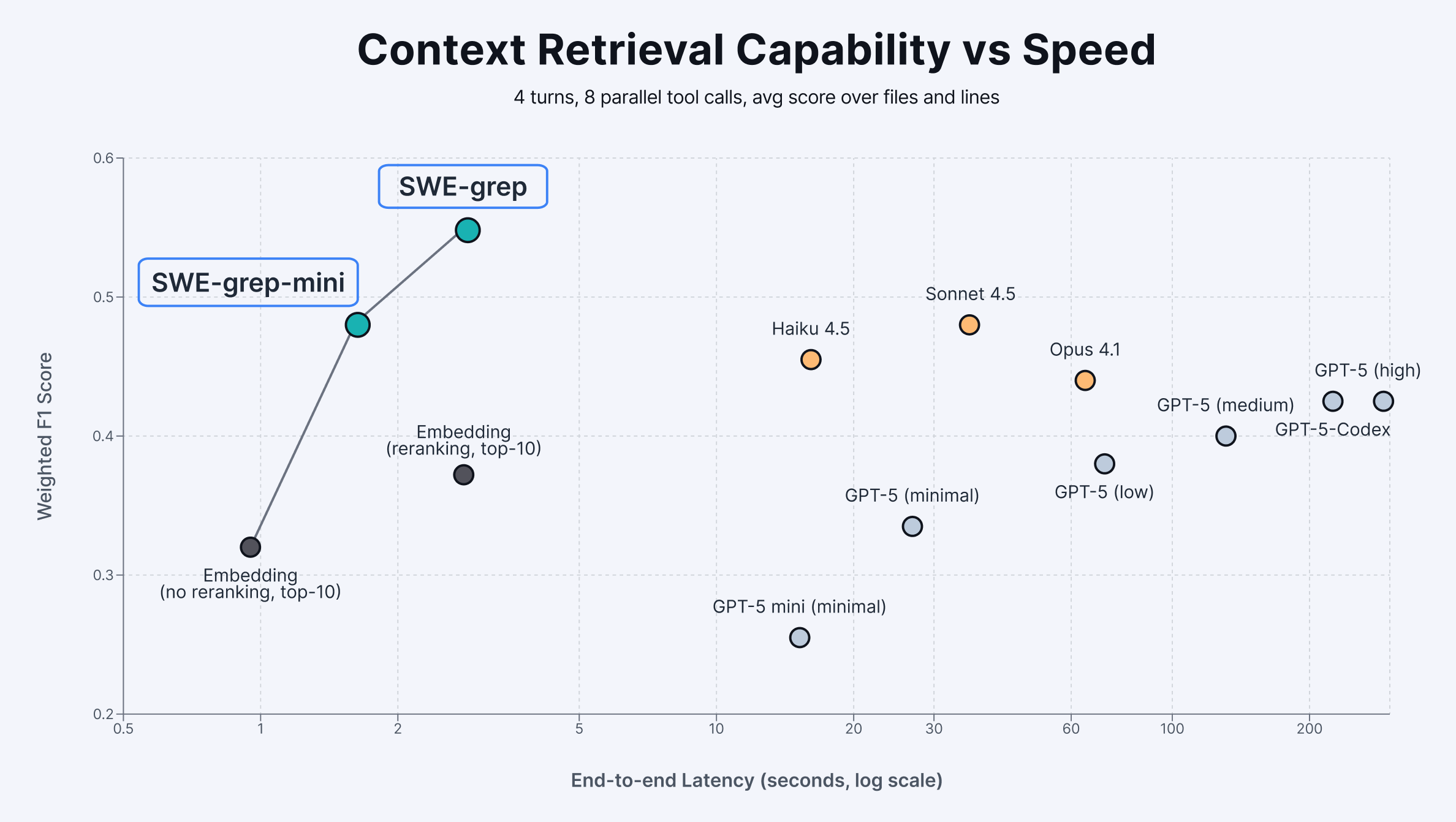 We trained SWE-grep and SWE-grep-mini, fast agentic models specialized in highly parallel context retrieval. They match the retrieval capabilities of frontier coding models, while taking an order of magnitude less time. Available now in Windsurf’s new Fast Context subagent, and our new SWE-grep demo playground!