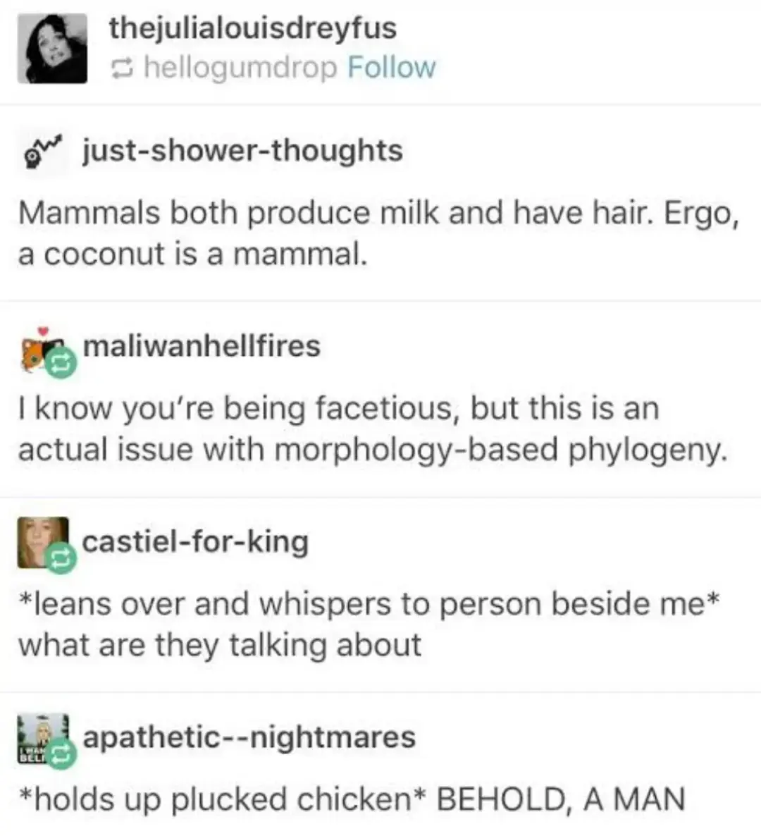 gandalf_der_12te@discuss.tchncs.de to Science Memes@mander.xyzEnglish · edit-22 days agomorphology-based phylogenylemmy.dbzer0.comimagemessage-square91fedilinkarrow-up1943arrow-down111