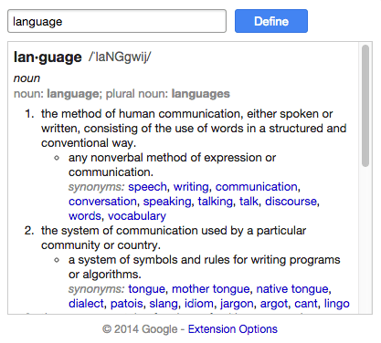 When you look up the word “Language” in the dictionary, you’ll find a few variations of similar definitions. My trusty Google Dictionary extension in Chrome, offers up a first definition that is rather obvious, but nevertheless: The method of human communication, either spoken or written, consisting of the use of words in a structured and conventional way. The second definition is more interesting because it allows me to make a point about programming languages. It goes like this: The system of communication used by a particular community or country. Look at that. Isn’t that beautiful? Let’s cut the country stuff,