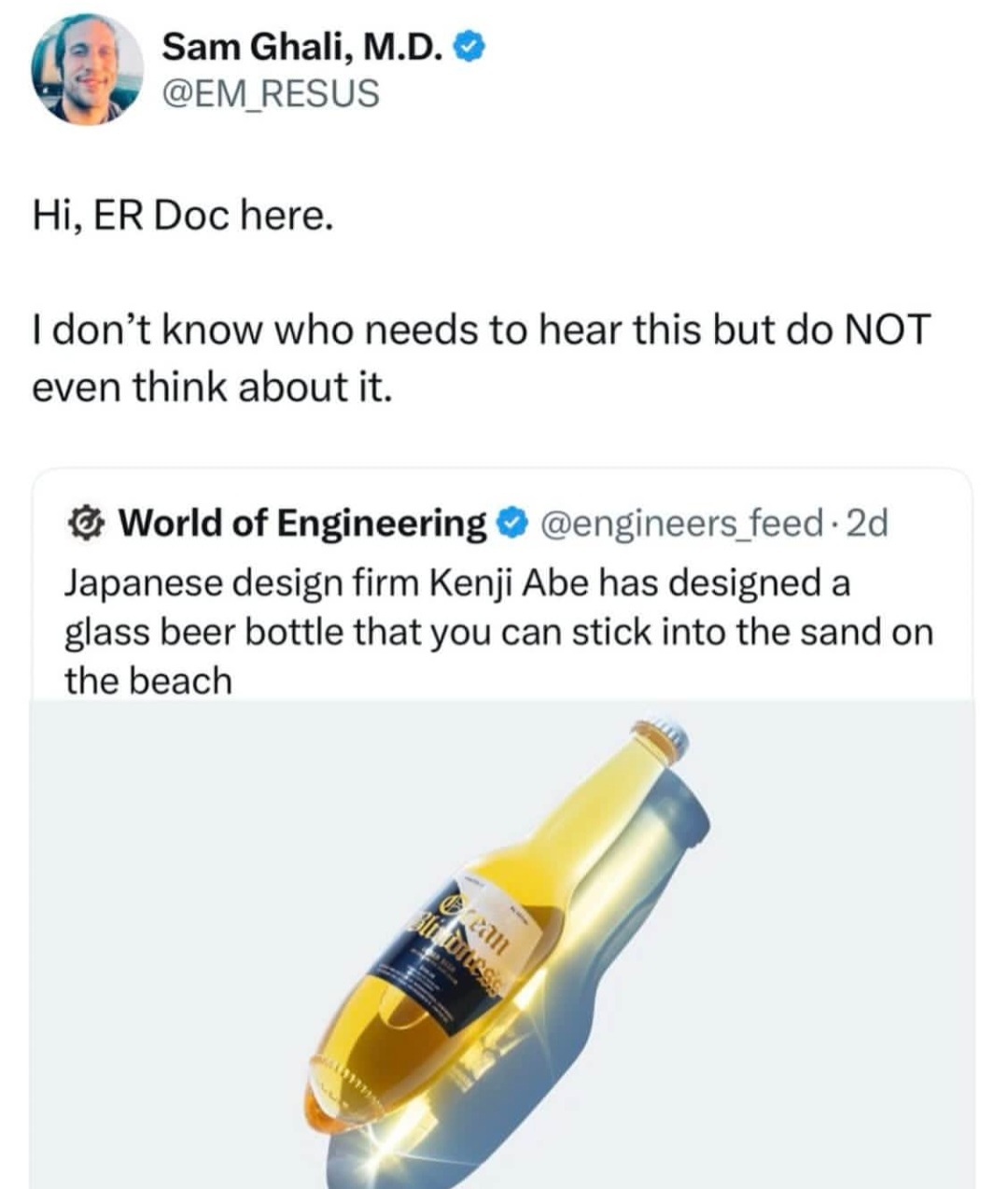 It has to be a joke. Why would I put my cold beer into the hot sand?