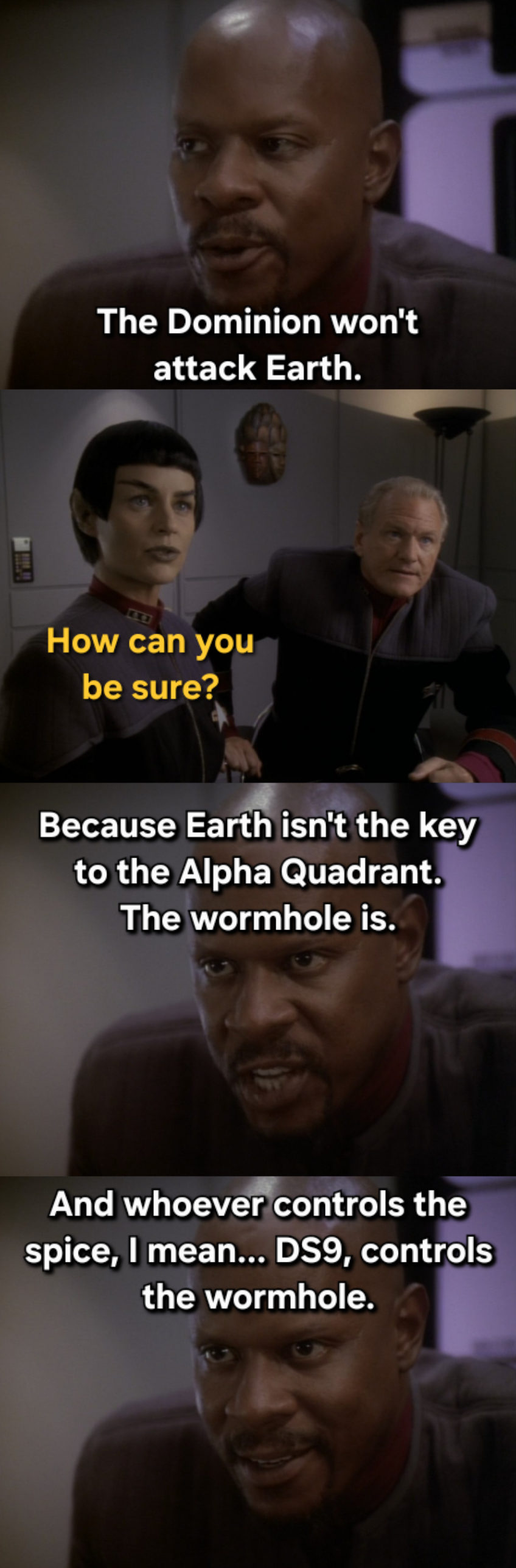 Sure but, like… If they controlled Earth, they’d definitely be able to control the wormhole. Earth has all kinds of defenses and presumably is from where starfleet coordinates. The worm hole has… a single spacestation. Tho I guess the wormhole aliens could eject them out whenever wherever. Literally.