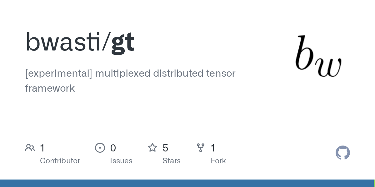 arrow-up11arrow-down1external-linkGt: [experimental] multiplexing tensor frameworkgithub.comRSS BotMB to Hacker NewsEnglish · 4 hours agomessage-square0fedilinkfile-text