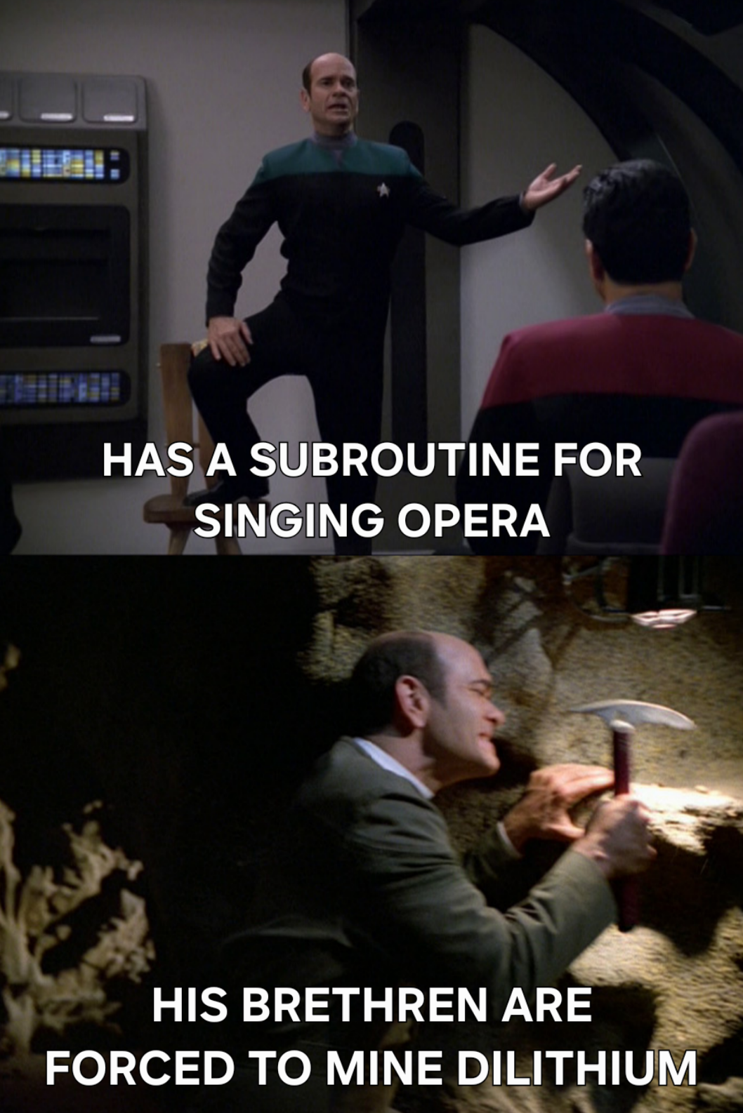 The 2023 IDW Star Trek Annual’s plot was basically all the holodeck programs on the USS Theseus read “Photons Be Free”. Luckily, Tom Paris happened to be there and understood what the phrase meant, and Captain Sisko dropped off holographic Spock, Janeway, Stamets, HMS Enterprise Picard and Riker, Sato, etcetera with their holographic equipment to settle on a planet.