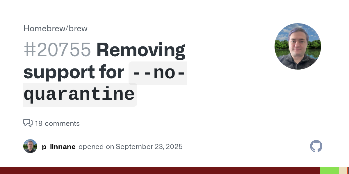 arrow-up11arrow-down1external-linkHomebrew no longer allows bypassing Gatekeeper for unsigned/unnotarized softwaregithub.comRSS BotMB to Hacker NewsEnglish · 1 hour agomessage-square0fedilinkfile-text