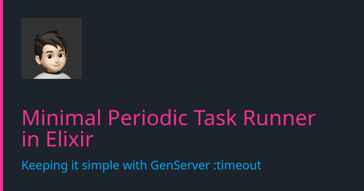 arrow-up11arrow-down1external-linkMinimal Periodic Task Runner in Elixirwww.jasontokoph.comRSS BotMB to Lobste.rsEnglish · 3 hours agomessage-square0fedilinkfile-text
