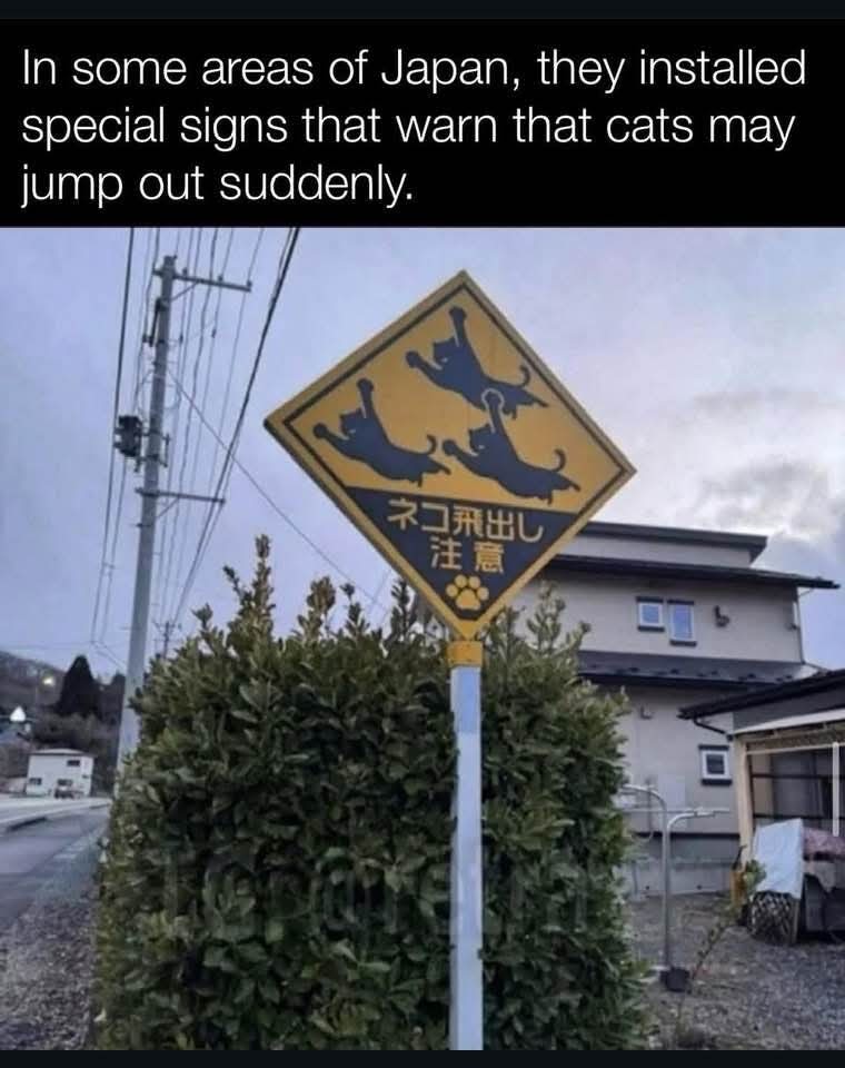 minus-squaretiredofsametab@fedia.iolinkfedilinkarrow-up1·6 days agoI’ve been in Japan a decade and don’t recall ever seeing one of these. It says ネコ飛出し注意 cat jumping out caution.