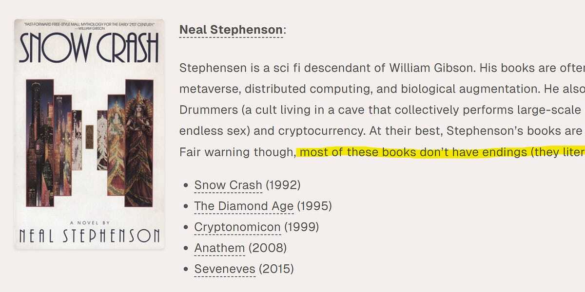 I love Neal, he is one of my favorite authors, but let’s be real - he very often has trouble landing the plane, and his third acts get wonky and disjointed. Picking apart the specific language of this critique feels a little shallow on his part.