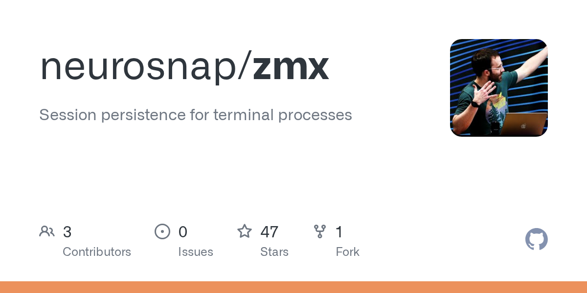 Greetings! After a couple of months of R&D I finally reached a place with this project where I’m using it as a fulltime replacement for what I would normally use <code>tmux</code> for: session persistence of terminal processes This essentially extracts the attach/detach functionality from <code>tmux</code> and turns it into its own tool. Instead of using tmux for windows, tabs, and splits, you would instead leverage your own window manager to handle that. Another neat aspect of this tool is terminal state and history restoration using <code>libghostty-vt</code>. We use libghostty-vt to restore the previous state of the terminal when a client re-attaches to a session. How it works: <pre><code>- user creates session zmx attach term