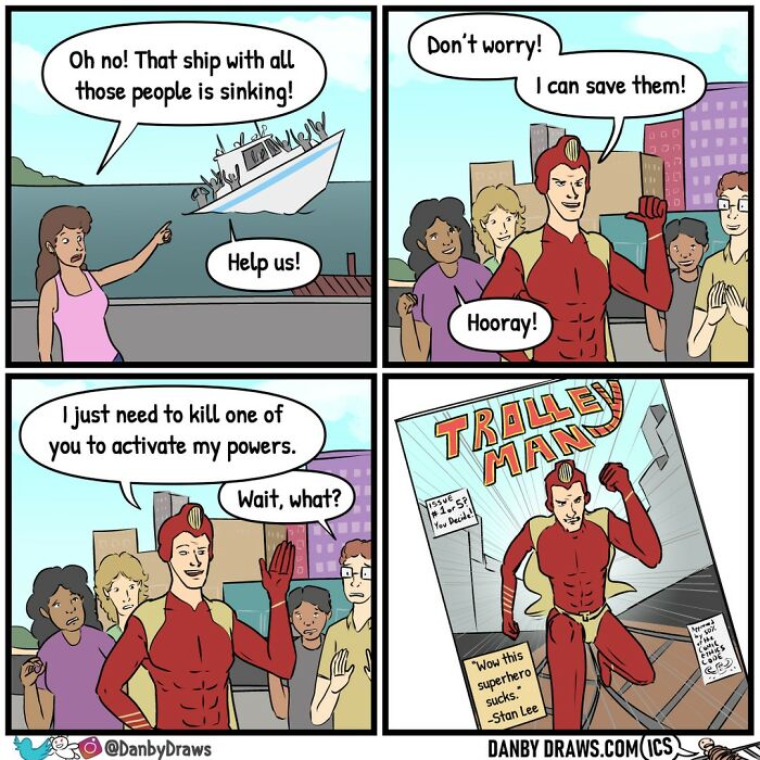 He was holding his baby sister when a dog was about to be run over by a car. He was so shocked when she fell to his feet in ashes that he didn’t even save that dog. In that moment he promised himself that he would always make the numerically superior choice.