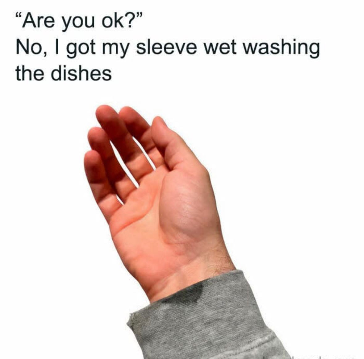 What a coincidence, I just sat down from washing dishes and my sleeve has pretty much the same exact size wet spot in nearly the exact same place. I suppose I should just crawl into bed and give up for the day but I’d need to take this long sleeve shirt off first and that’s a lot of work right now while my wrist is cold and wet.