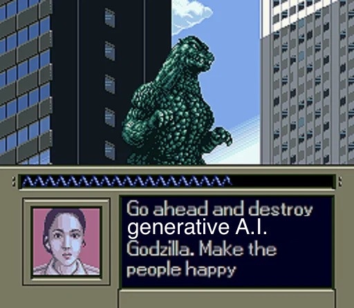 Destroying only generative AI Godzilla wouldn’t be nearly enough to make the people happy, so 2.