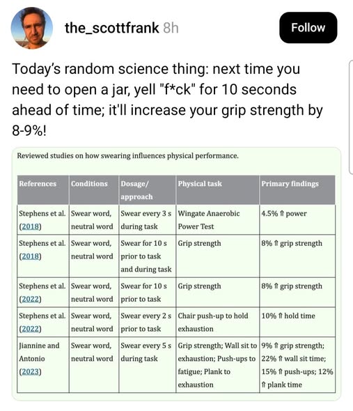 minus-squareThrydwulf@lemmy.todaylinkfedilinkEnglisharrow-up6·2 days agoSwears are MMORPG buffing spells. Let them all rip simultaneously for burst and maximize jar DPS.