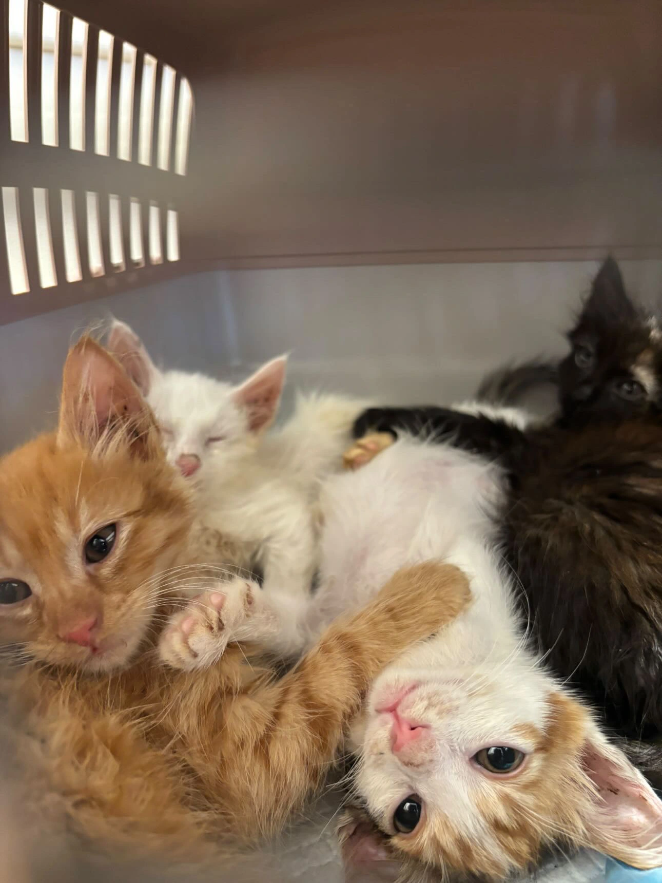 So these kittens were living in a village and a lady brought them and the mom to the vet. The mom has a pancreatic issue so the lady has taken the mom back and is going to keep her inside but was going to return these four out to the street again which I could not let happen… so I am housing these four who just battled Guardia they are going to be in quarantine for a while in the little playpen and posted pictures up below. My friend is gonna be posting 2 of them for adoption to her many cat groups and hopefully we find some of these guys homes. I’m going to be keeping the white and black cats I’ve named them milk and cookies :)