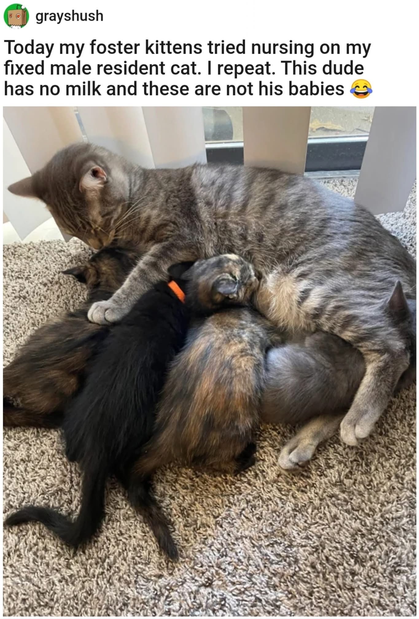 Fixed, male, and still letting them cuddle? That’s a certified good boy right there.
