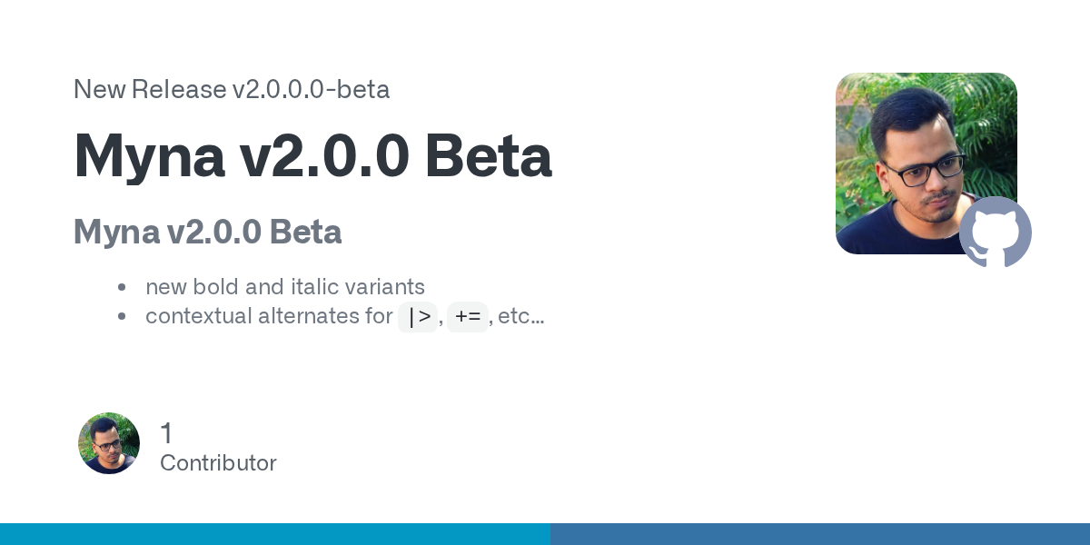 Myna v2.0 Beta is released. It features new bold and (faux) italic variants to accomodate separate font files demanded by terminal emulators, contextual alternates for pipe operator in Gleam and assignment operators in Go among others. Last time when I mentioned Myna is a font designed for symbol-heavy programming, many folks (perhaps mockingly) suggested APL is the ultimate symbolic language. Inspired by those requests, Myna v2.0.0 Beta features a good subset of APL glyphs with the aim of making APL programming on par with Perl and Haskell on the Unicode terminal. Please test this beta release and report any missing/misaligned glyphs. Requests for any other features are also welcome. Comments