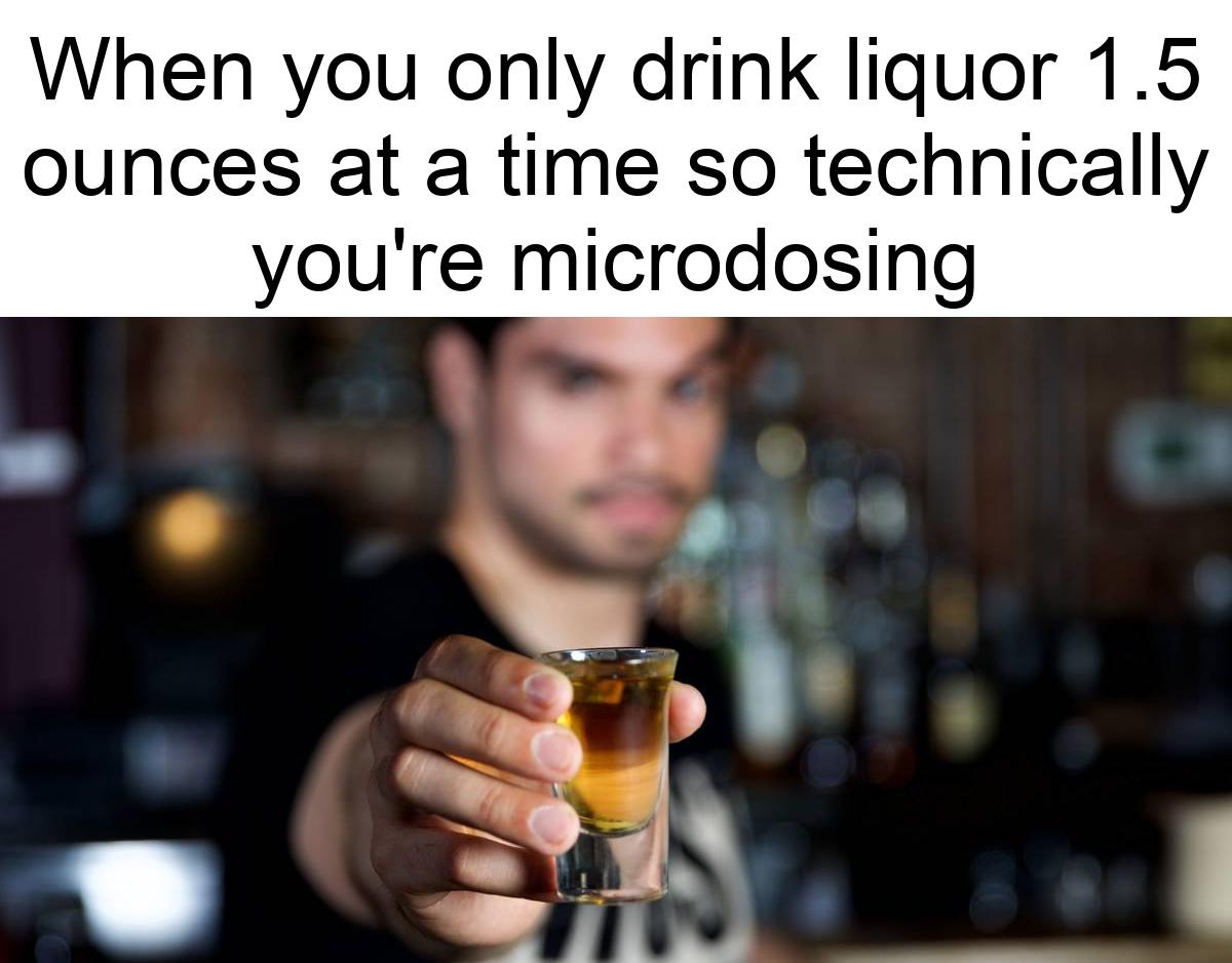 And I get in my car and drive just a meter or so, so I’m only microdosing a DUI too which is basically not a crime