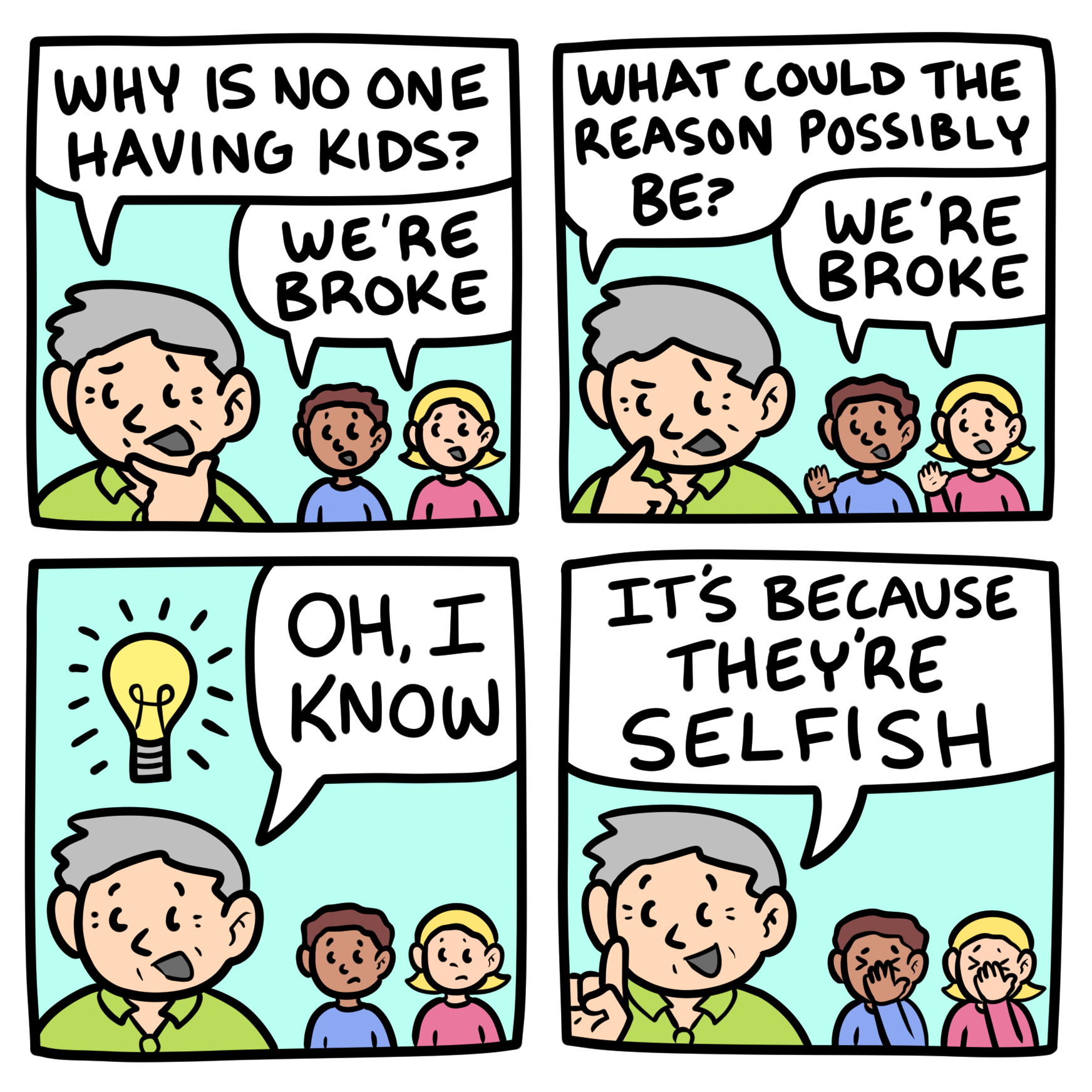 We’re not broke or selfish. We don’t want kids and also don’t feel it’s fair to bring a life into this world with the current state of things.