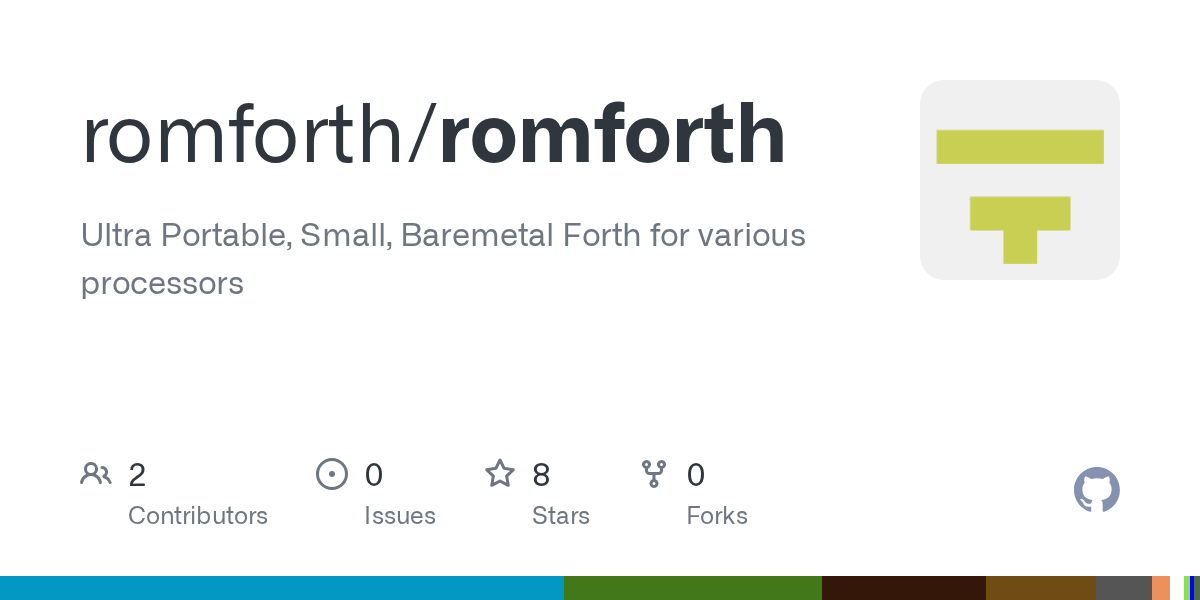 arrow-up12arrow-down1external-linkromforth: Ultra Portable, Small, Baremetal Forth for various processorsgithub.comRSS BotMB to Lobste.rsEnglish · 2 hours agomessage-square0fedilinkfile-text