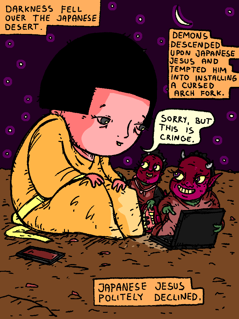pmjv@lemmy.sdf.org to Funhole@lemmy.sdf.org · 7 days ago40 days in the Japanese desert: the second Onilemmy.sdf.orgimagemessage-square0fedilinkarrow-up11arrow-down10cross-posted to: comicstrips@lemmy.world