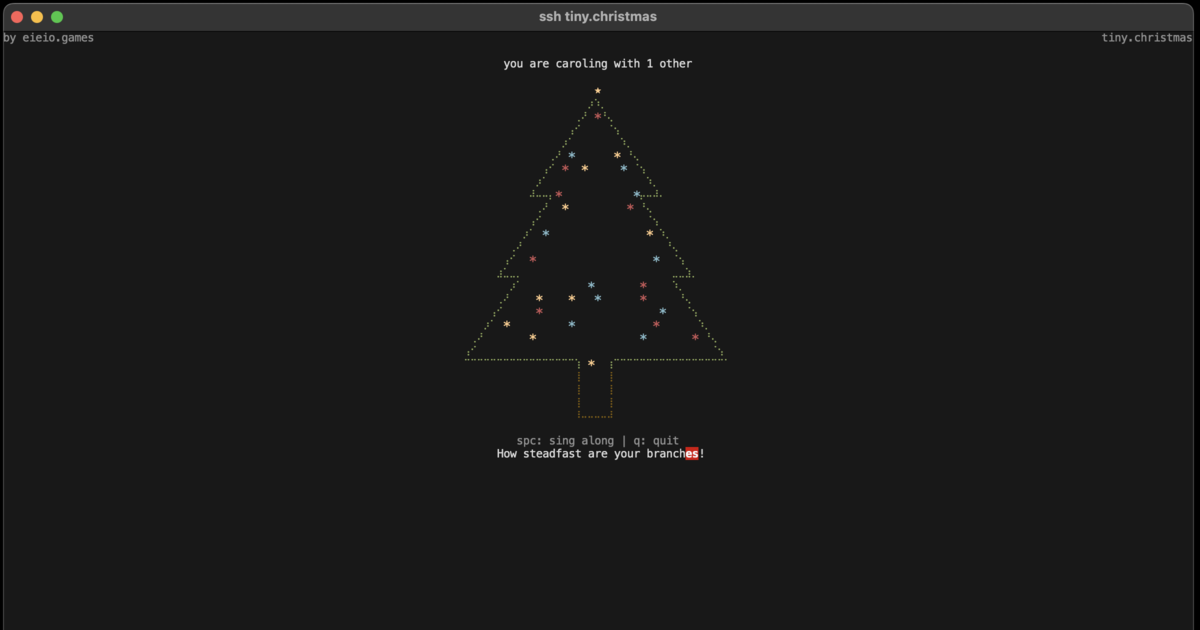 RSS BotMB to Lobste.rsEnglish · 3 hours agossh tiny.christmaseieio.gamesexternal-linkmessage-square0fedilinkarrow-up14arrow-down10file-text