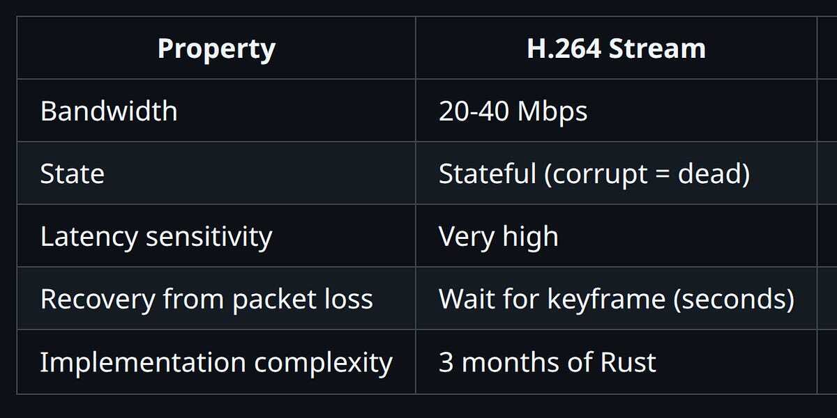 Like, every single search I’ve tried about this problem has immediately led me to RDP/VNC. The only way how I can see the ignorance displayed in the post is that they ignored it on purpose - lacking any real knowledge about the problem they are trying to solve, they simply jumped to “we’ll have a 60 FPS HD stream!”, and their problem statement never was “how to do low-bandwith remote desktop/video sharing”, but “how to stream 60 FPS low-latency desktop”.