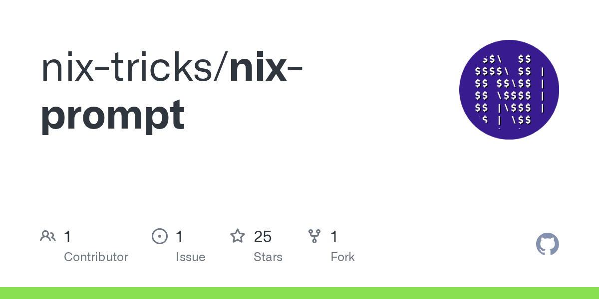 RSS BotMB to Lobste.rsEnglish · 6 小时前nix-prompt: a clean and modular bash prompt with just the right amount of customization optionsgithub.comexternal-linkmessage-square0fedilinkarrow-up13arrow-down10file-text