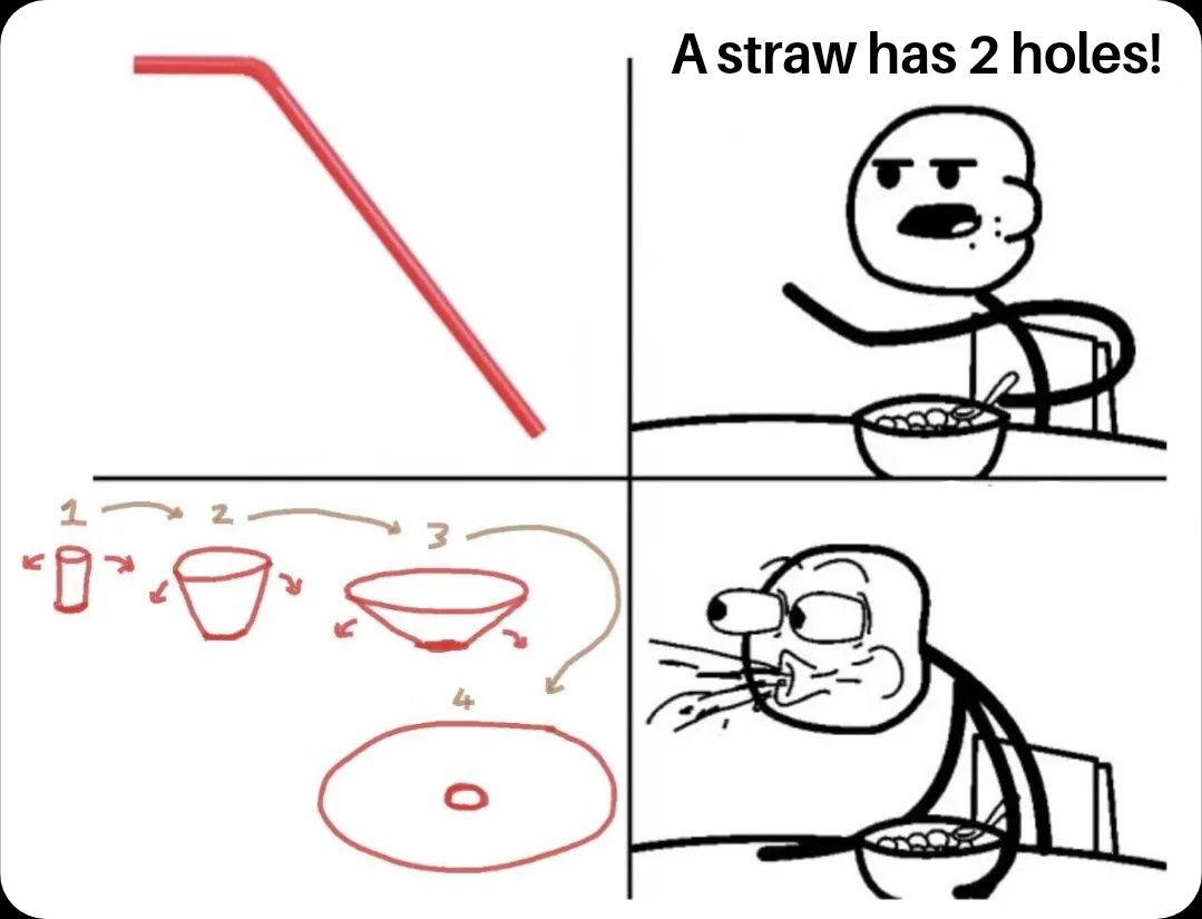 minus-squaresomeacnt@sh.itjust.workslinkfedilinkEnglisharrow-up5arrow-down1·edit-210 days agoIt still has two holes compared to a sphere, and that is our usual frame of reference.