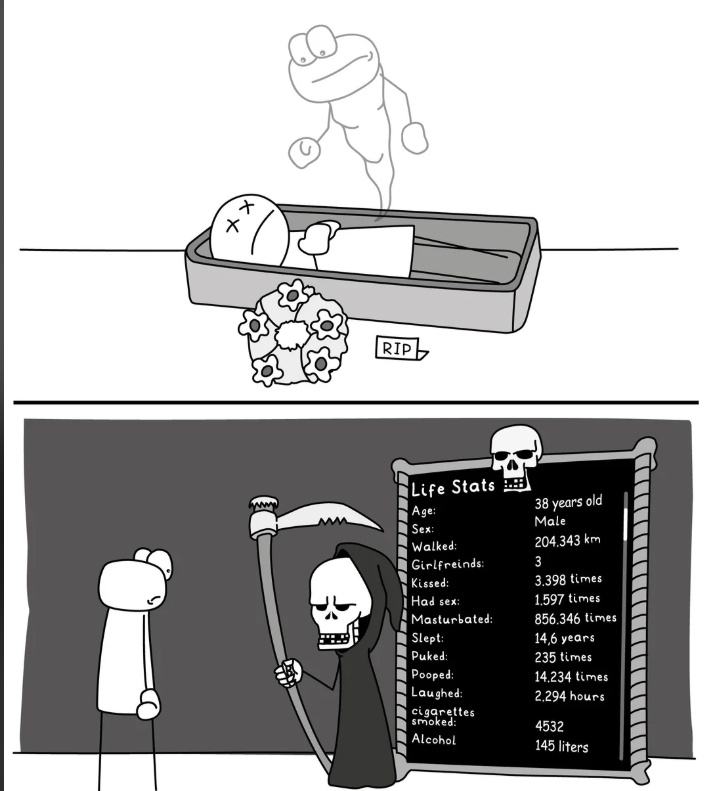 I thought “damn died after only 1.5 rounds of sex. That’s rough buddy!”