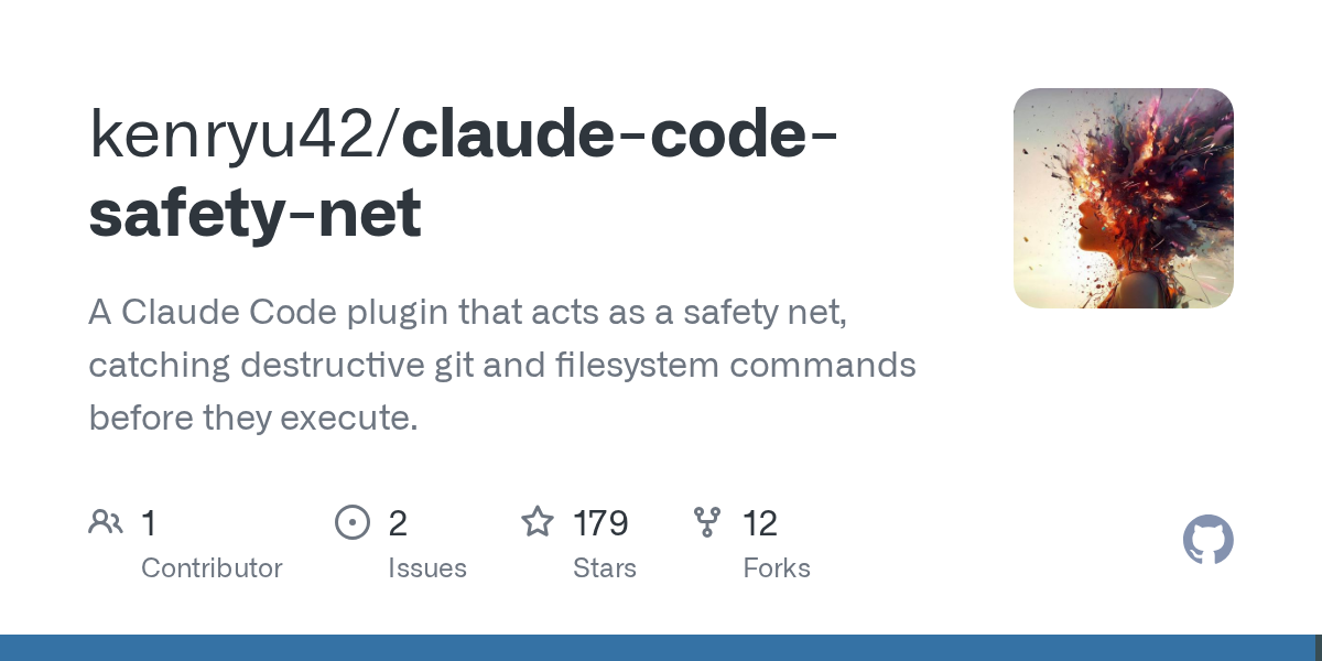 arrow-up11arrow-down1external-linkShow HN: A Claude Code plugin that catch destructive Git and filesystem commandsgithub.comRSS BotMB to Hacker NewsEnglish · 2 hours agomessage-square0fedilinkfile-text