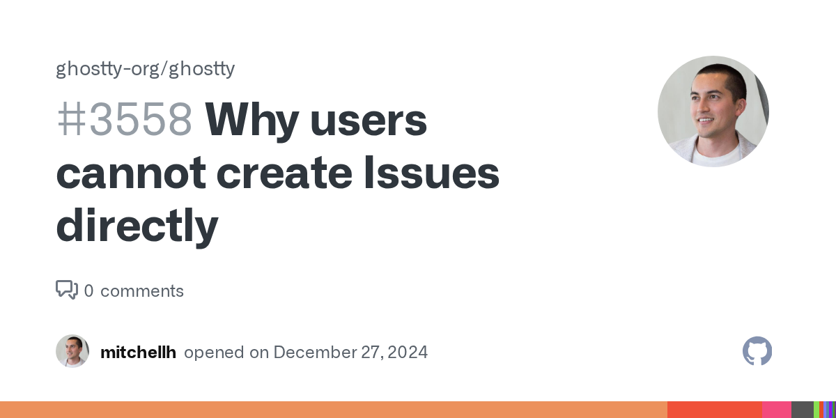 arrow-up11arrow-down1external-linkWhy users cannot create Issues directly (Ghostty)github.comRSS BotMB to Hacker NewsEnglish · 2 hours agomessage-square0fedilinkfile-text