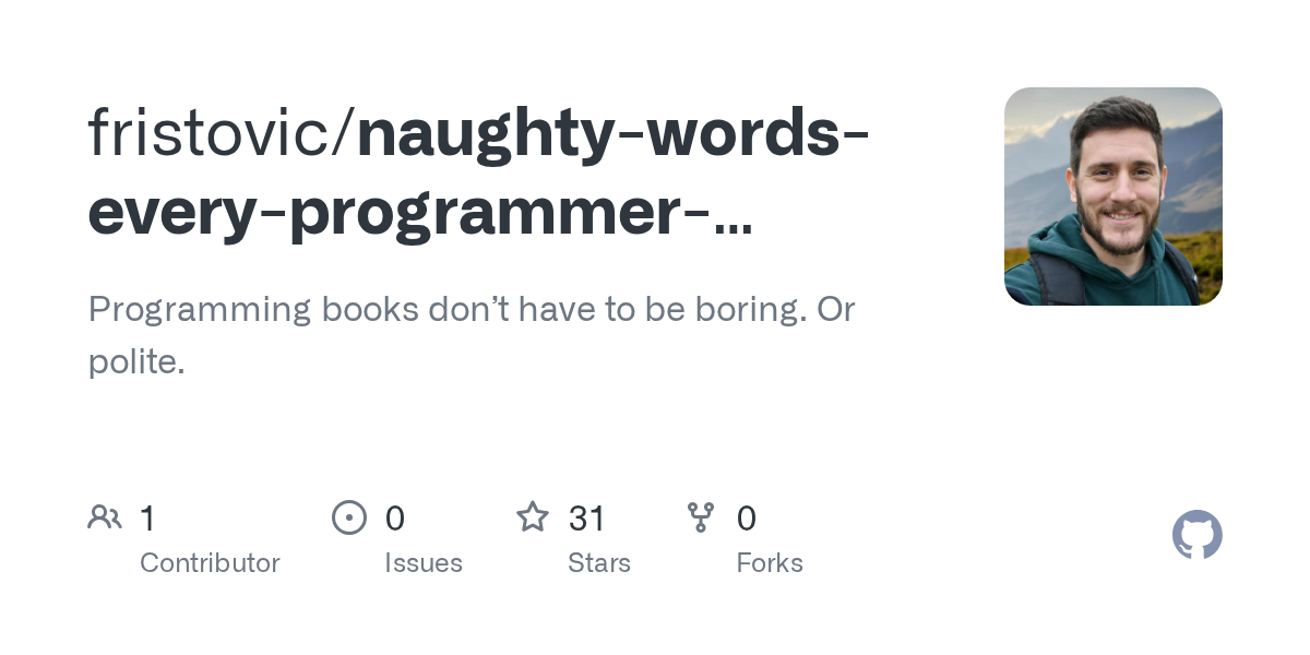 arrow-up19arrow-down1external-linkNSFW Acronyms for Programmers (Free eBook)github.comRSS BotMB to Hacker NewsEnglish · 2 days agomessage-square0fedilinkfile-text