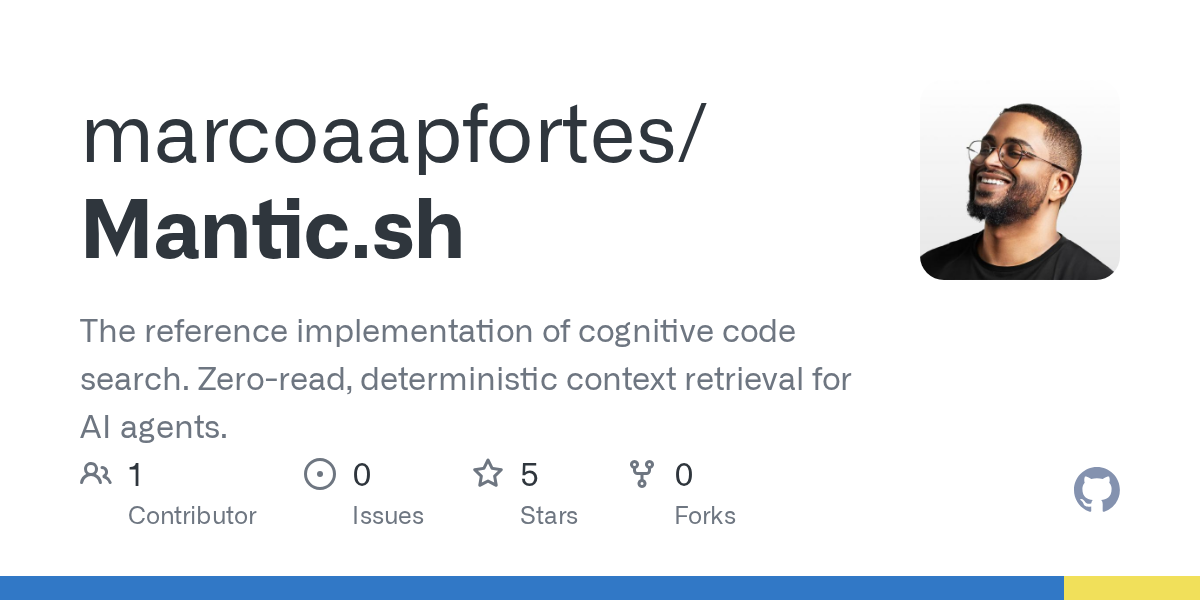 arrow-up14arrow-down1external-linkShow HN: Mantic.sh – Search 480k files in 0.46s without embeddingsgithub.comRSS BotMB to Hacker NewsEnglish · 1 day agomessage-square0fedilinkfile-text